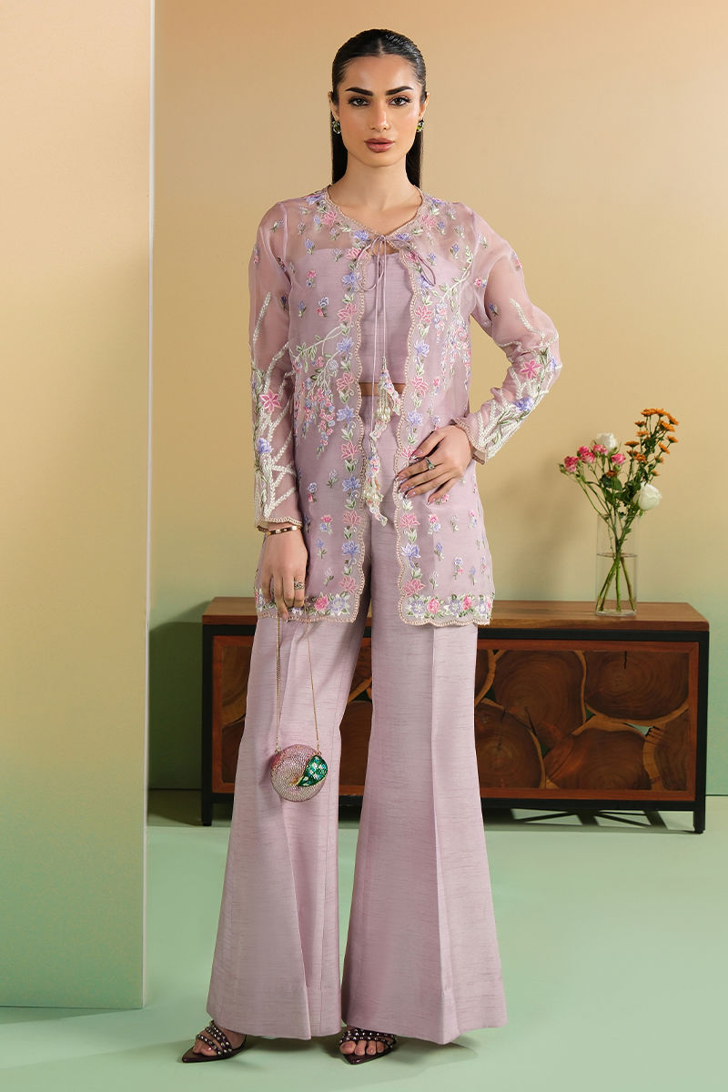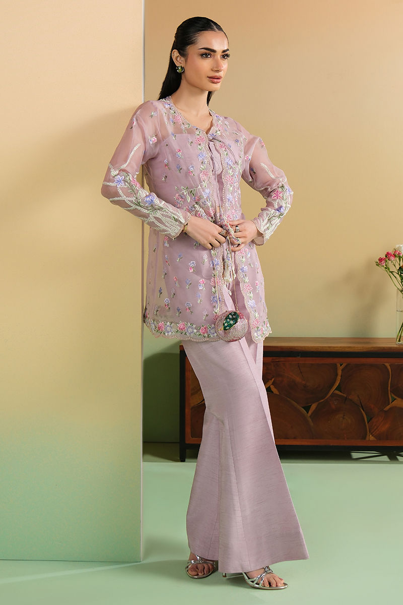 Color: Lilac Fabric: Jacket: Organza, Pants: Korean Raw Silk Work Details: Embroidered